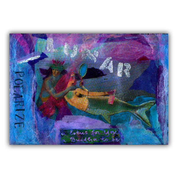 When I began following the Tzolkin and 13 moon calendars 17 years ago I slipped into an instant shamanic reverie where the distinction between art and spirituality fell away. I used the creative process to make conscious connections to god, the spirits behind the Mayan teachings. I expressed what I learned with my hands, on paper and in totems. And pretty quickly I became a teacher of the cycles so I used the Natural Time-inspired art for my own published calendars. Perhaps I will return to that enterprise in the future, but I have to admit that as my daughters grew up and their own education became more intellectual and cerebral, I have spent my creative hours on writing rather than making images and multi-media sculpture. So the offerings I present here are antiquated, nostalgic, rather than current endeavors. The words are brand new!